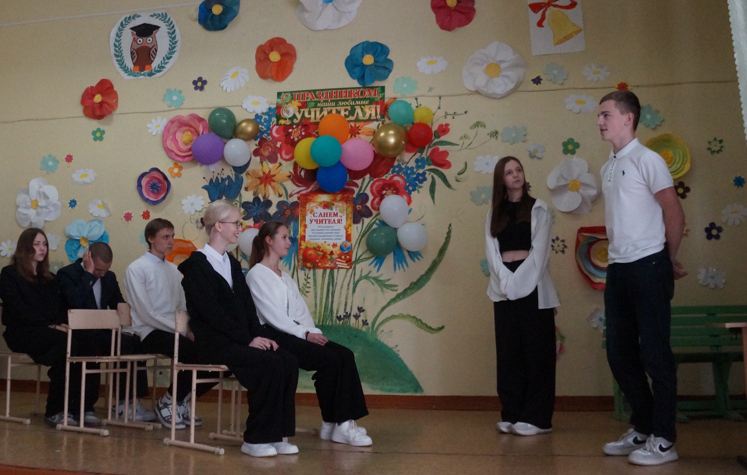 4 октября 2025. Юные артисты школьного театра приняли самое активное участие в праздничном концерте, посвященном Дню учителя. Ребята подготовили несколько номеров - сценки «Молодой учитель», «Телепатия», «Веселые уроки», продемонстрировав свой артистизм и умение перевоплощаться. Для многих выступление на сцене было дебютным. Дебютными стали и выступления в роли конферансье шестиклассников Миши Шкобина, Паши Петрова, Акима Кузюра и Миши Сердюцкого. Концертная программа получилась яркой, душевной, насыщенной творчеством, наполненной любовью и искренним уважением к героям праздника - учителям. Подробнее https://vk.com/wall-218961202_40