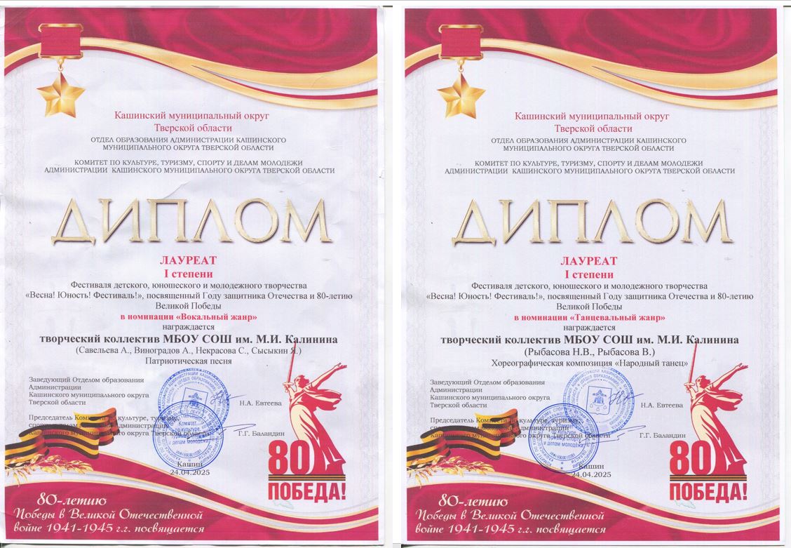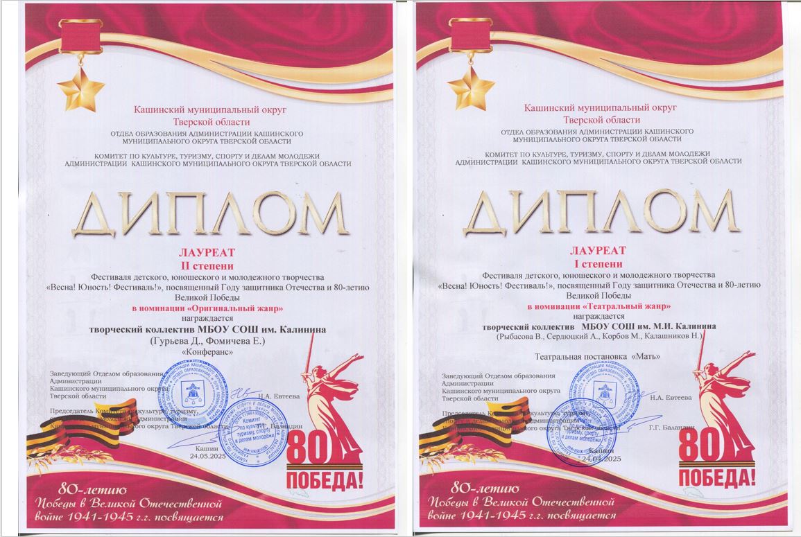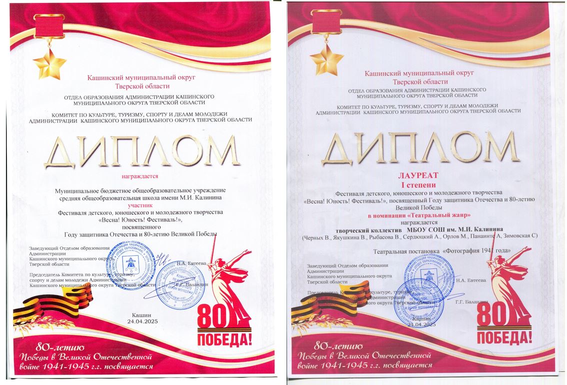 Сертификат театра юного актёра МБОУ СОШ им. М. И. Калинина