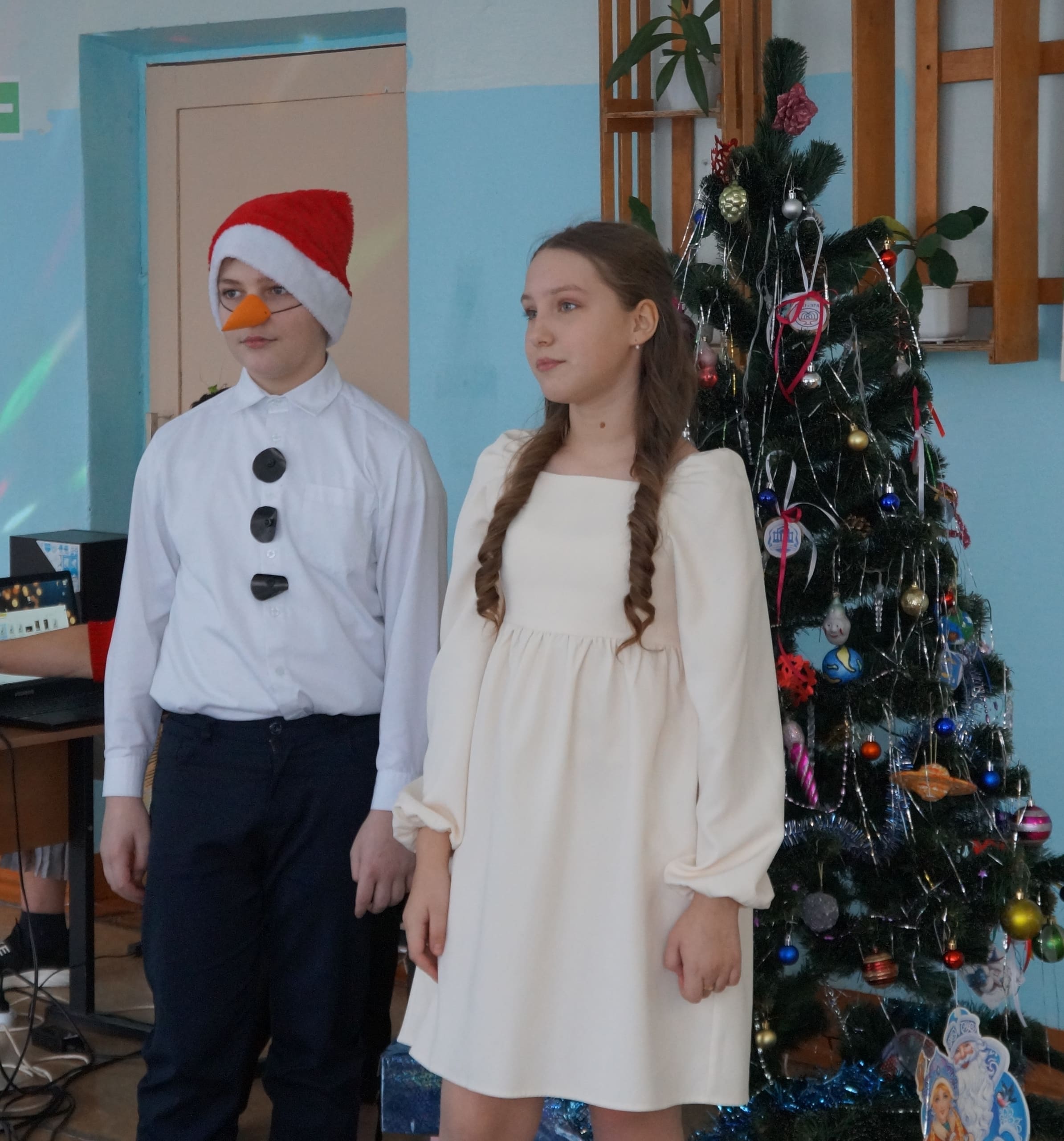 В канун Нового 2026 года в школе прошли новогодние праздники.Юные актеры нашего театра предстали в сказочных образах Деда Мороза, Снегурочки, Снеговика, Лешего, разбойников и показали забавные новогодние сценки